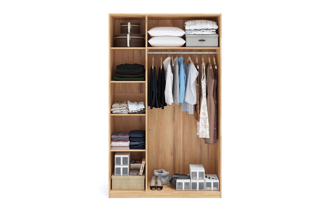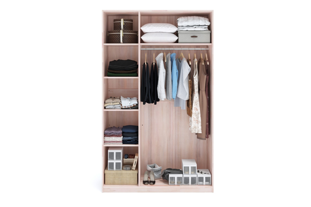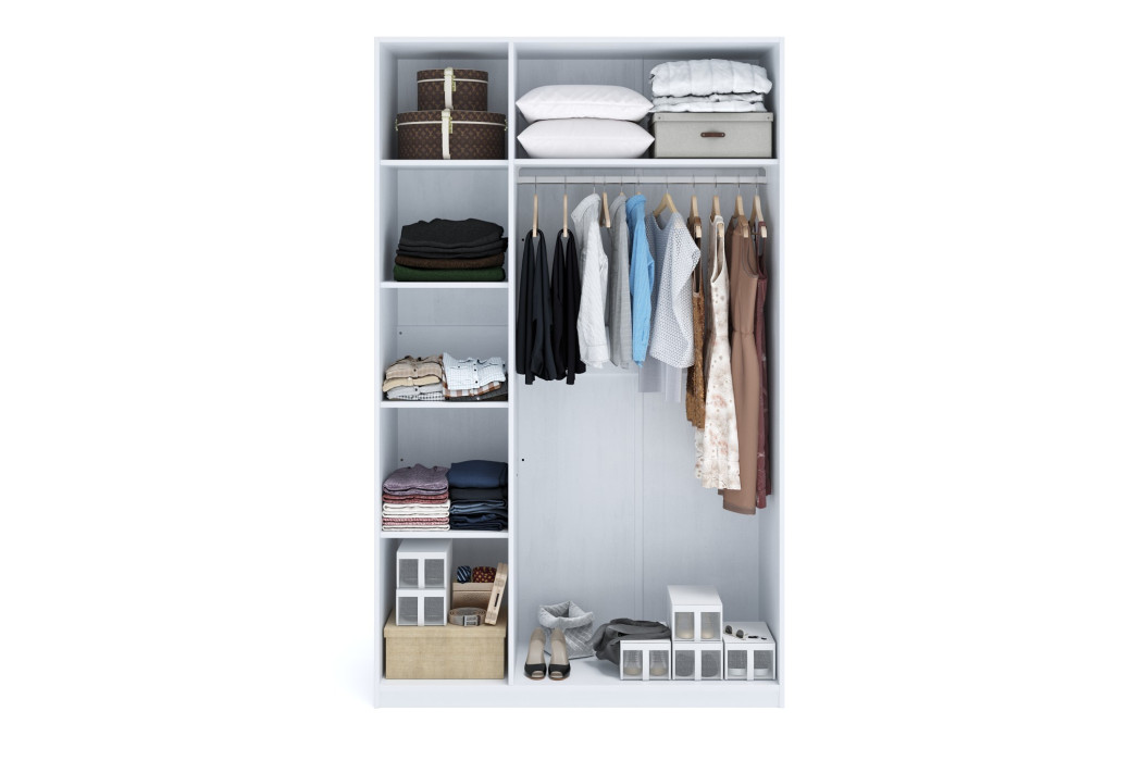 Стандартна організація внутрішнього простору включає:- секцію зі штангою для одягу на вішалках - полиці для складання речей та текстилю - верхню зону для сезонного зберігання Таке наповнення дозволяє зручно організувати гардероб у повсякденному використанні.Додаткові платні опції