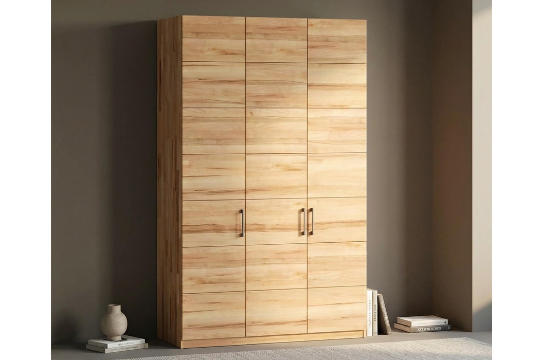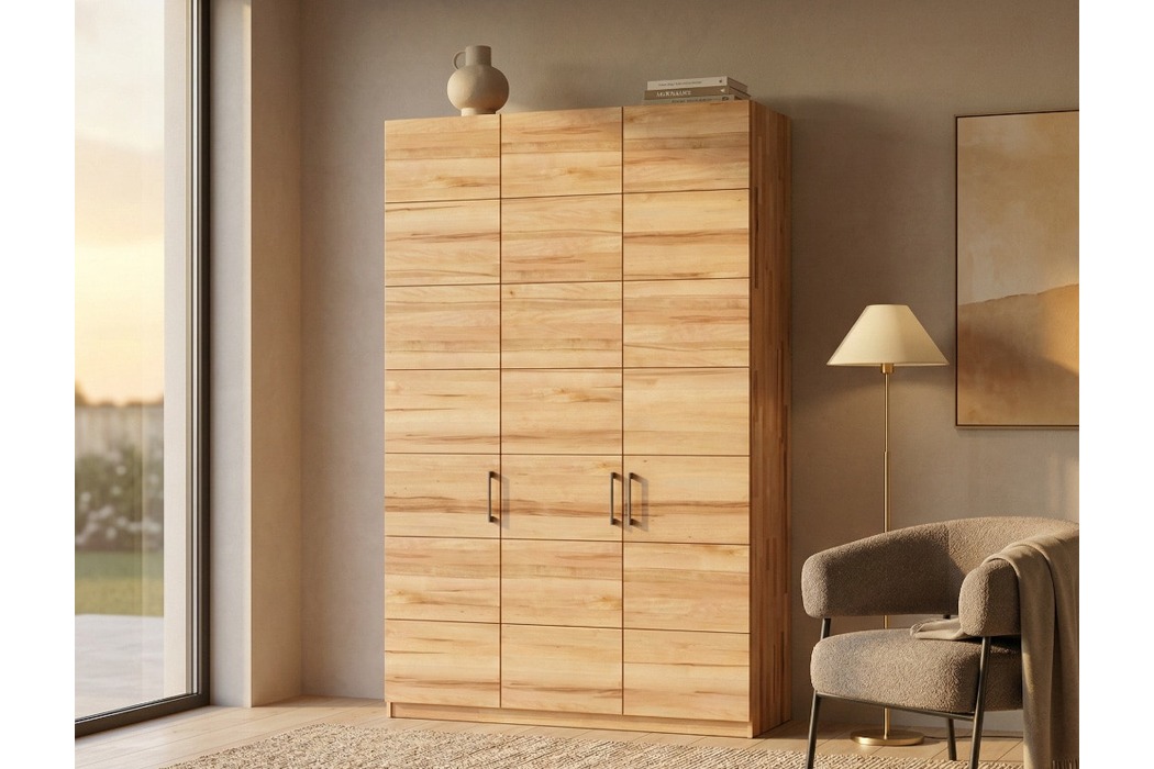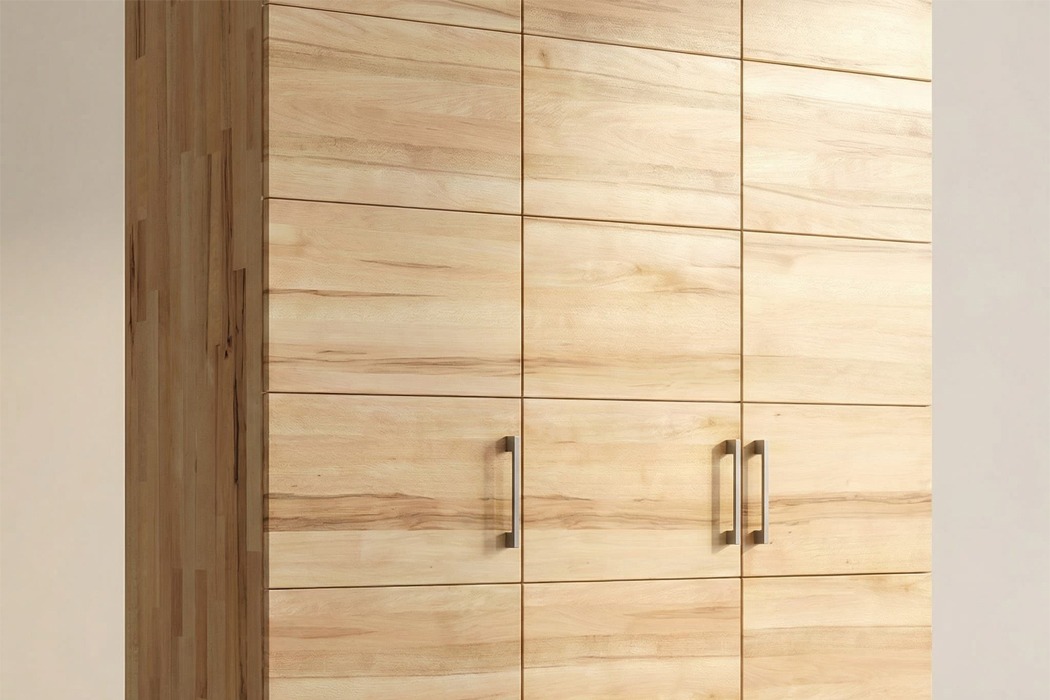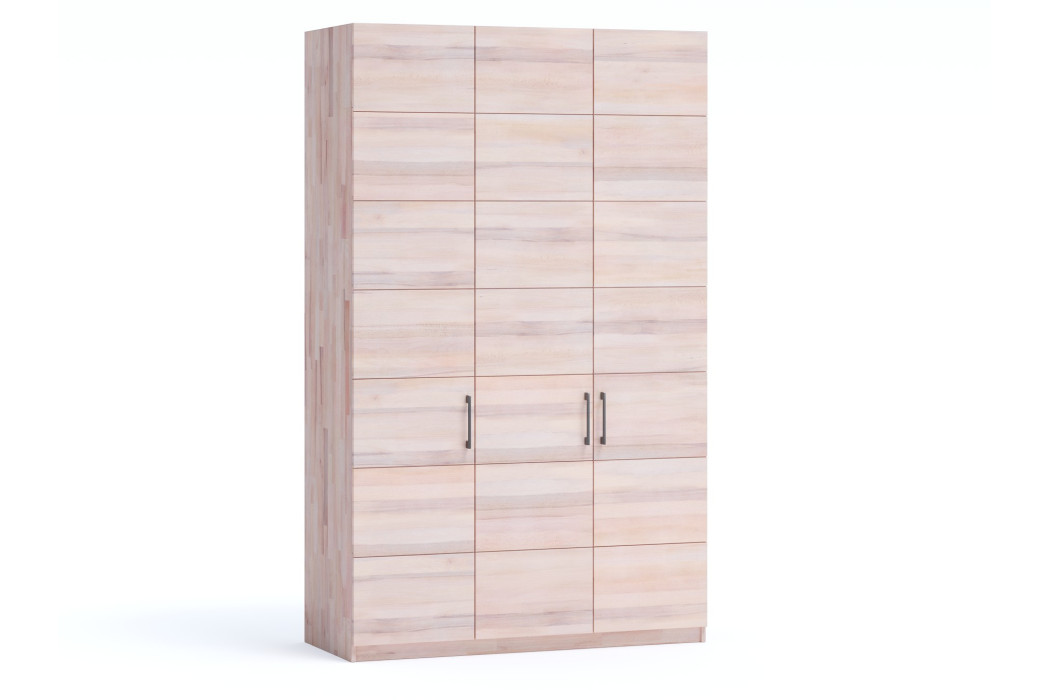 Шафа Кетрін Еко 3-дверна - це сучасне рішення для організації простору, створене в концепції натуральних меблів та скандинавської простоти. Модель поєднує природну естетику дерева, продуману функціональність і універсальний дизайн, який легко вписується в інтер'єр спальні або гардеробної кімнати.Матеріали та якість
