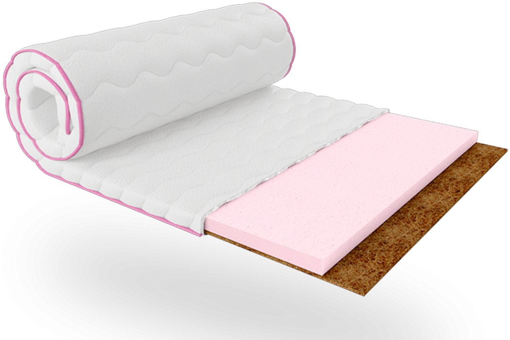 - Латексована кокосова койра – природний наповнювач, просочений натуральним латексом, підвищує жорсткість, еластичність і довговічність матраца;